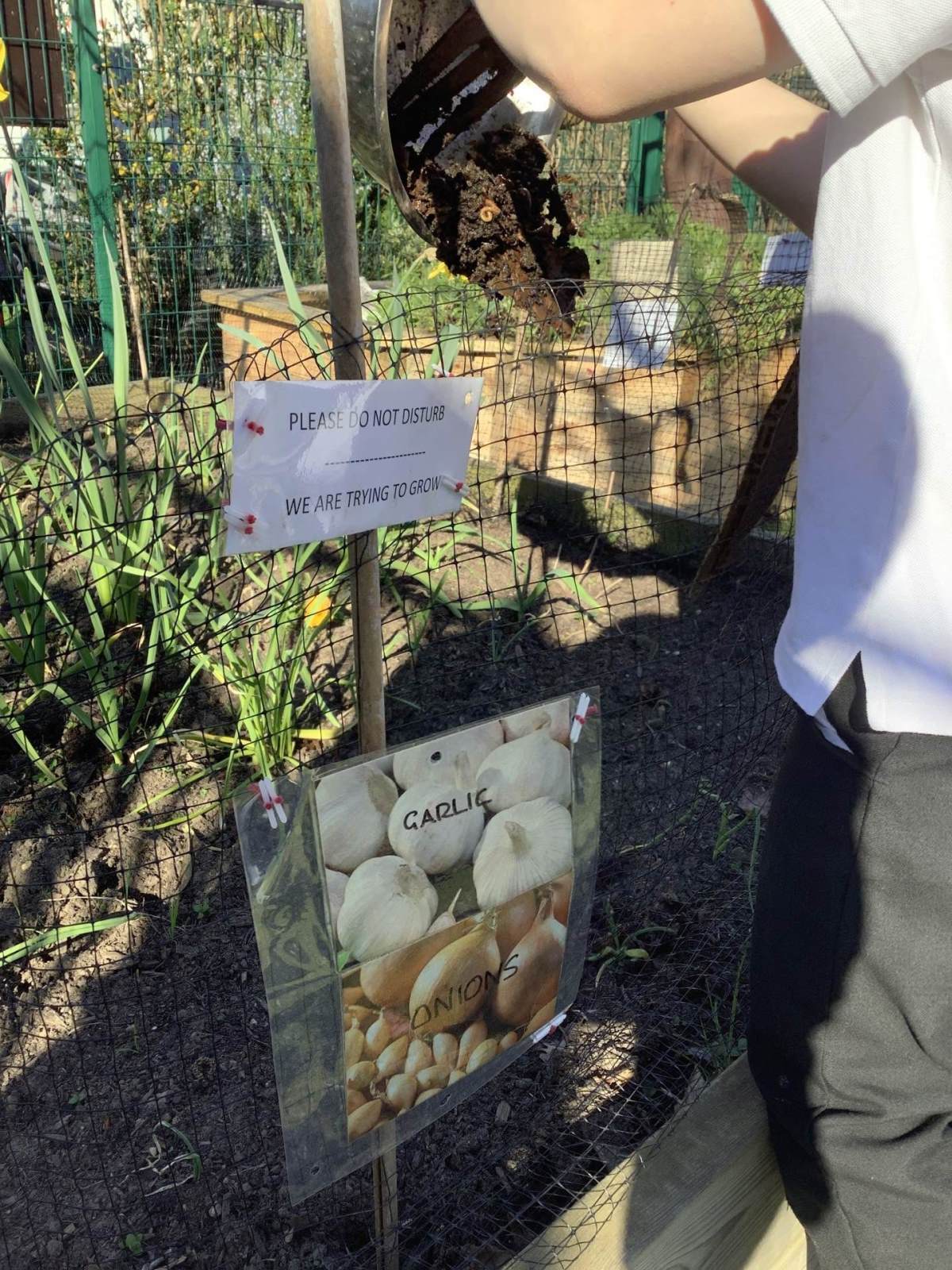 We have also harvested some of our home made vermicompost for use in our allotment. The compost is made largely from vegetable peelings from the kitchen and this, in turn, goes to fertilise things such as garlic and vegetables that are used for our school meals.